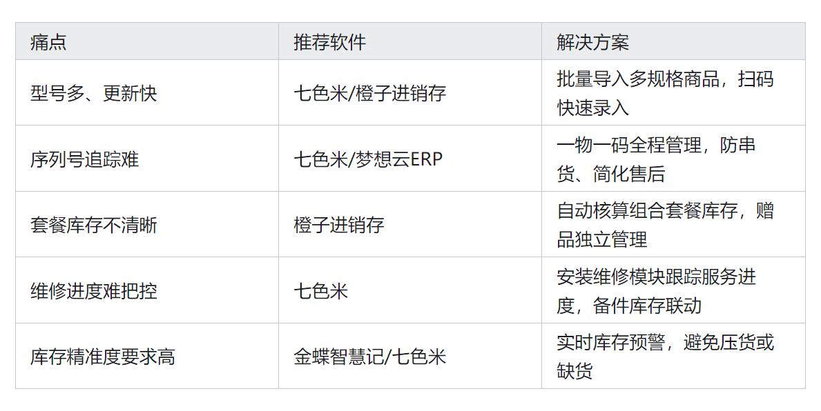 a. 序列號管理、AI開單、維修跟蹤是家電數碼行業剛需, 七色米 在此領域適配最深。